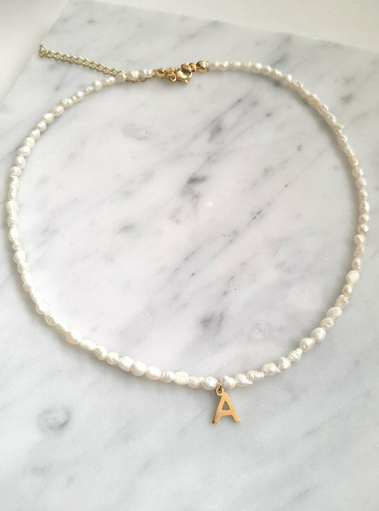 Ogrlica od Čelika sa Slovom i Riječnim Biserima