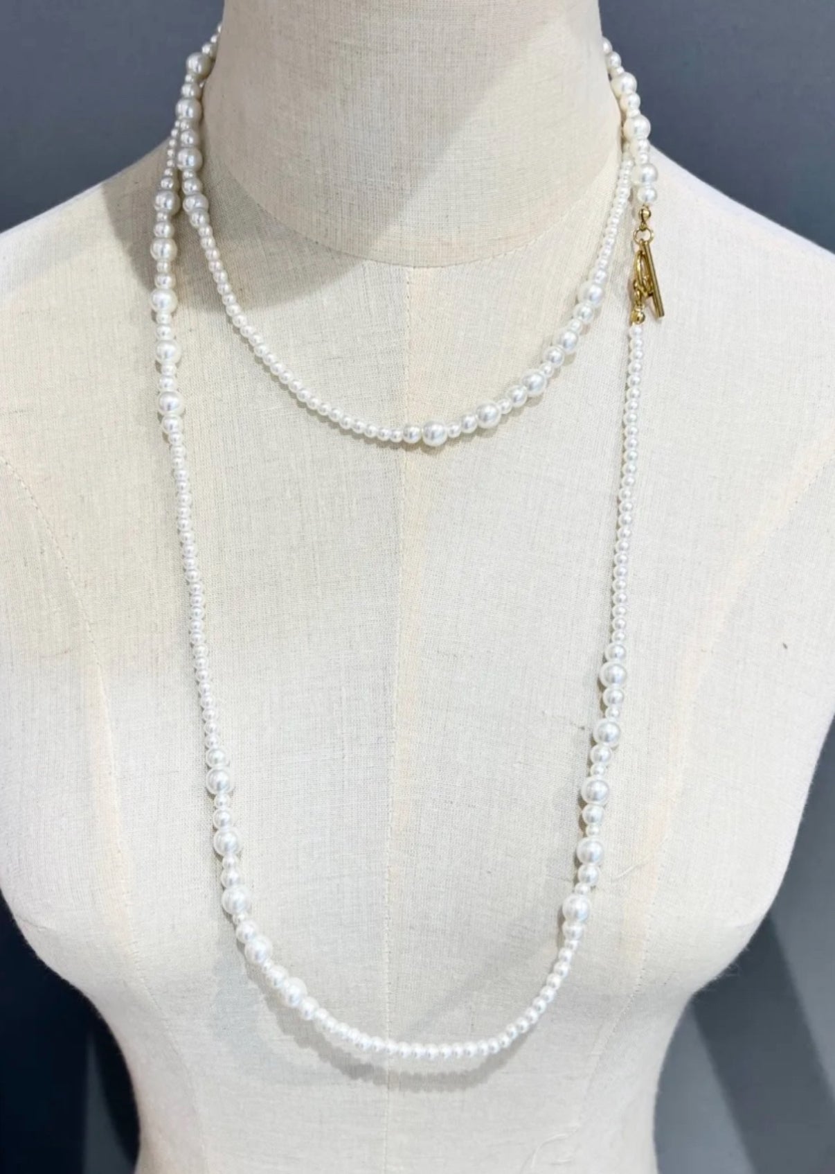 Jednostavna i decentna ogrlica izrađena od plastičnih perli i detalja od čelika sa pozlatom.