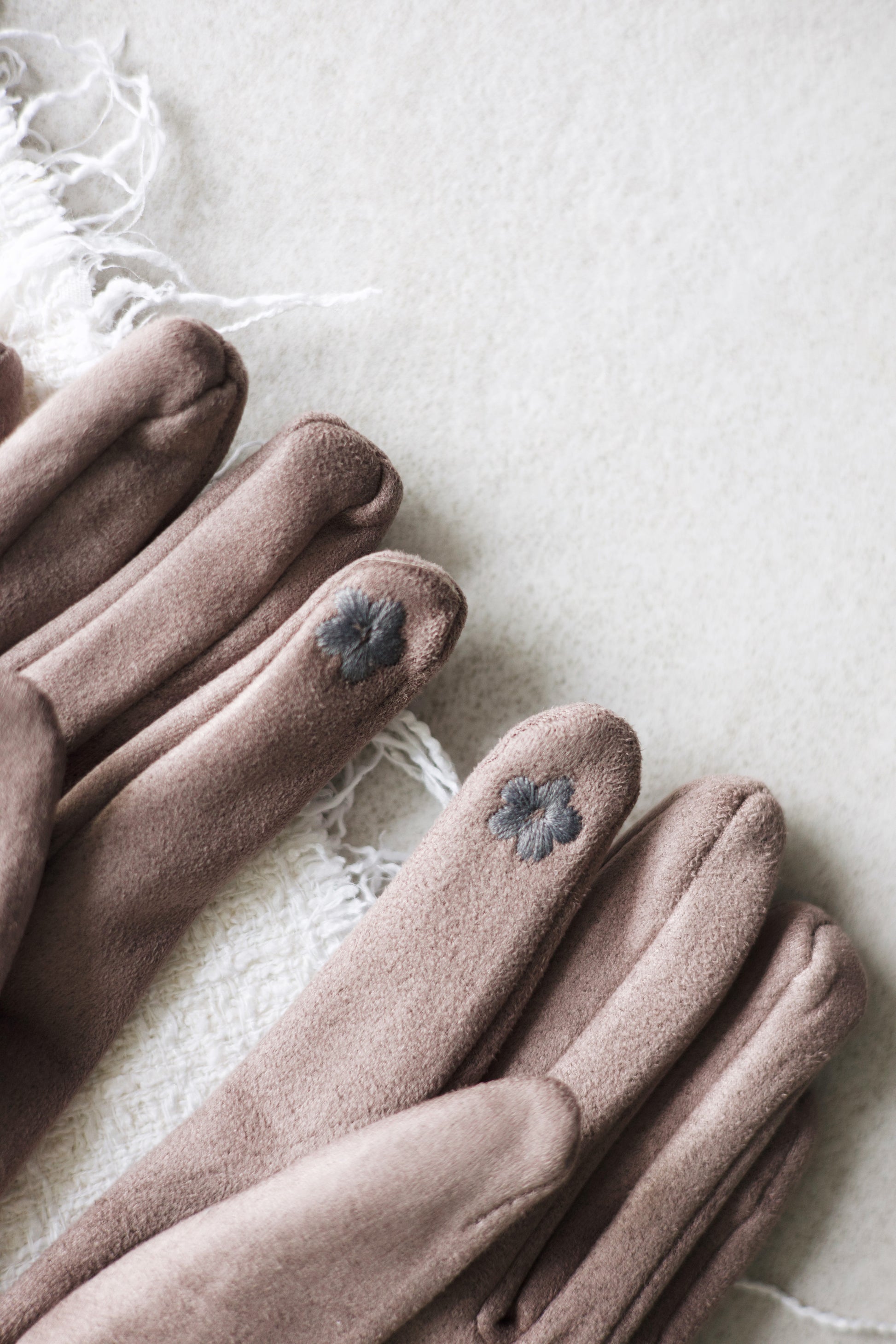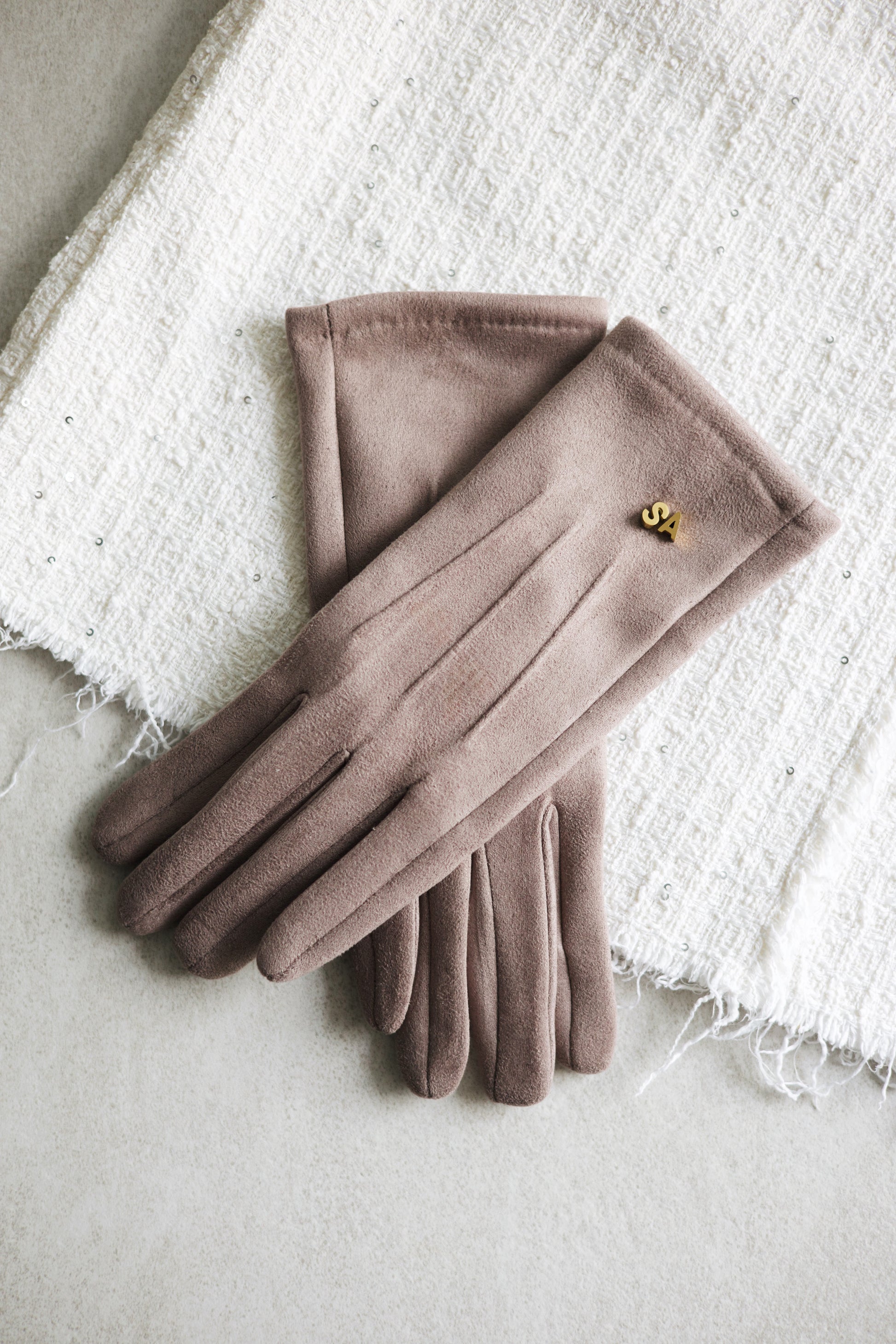 Rukavice izrađene od imtacije brušene kože, unutra podstavljene. Sa inicijalima od čelika sa pozlatom.