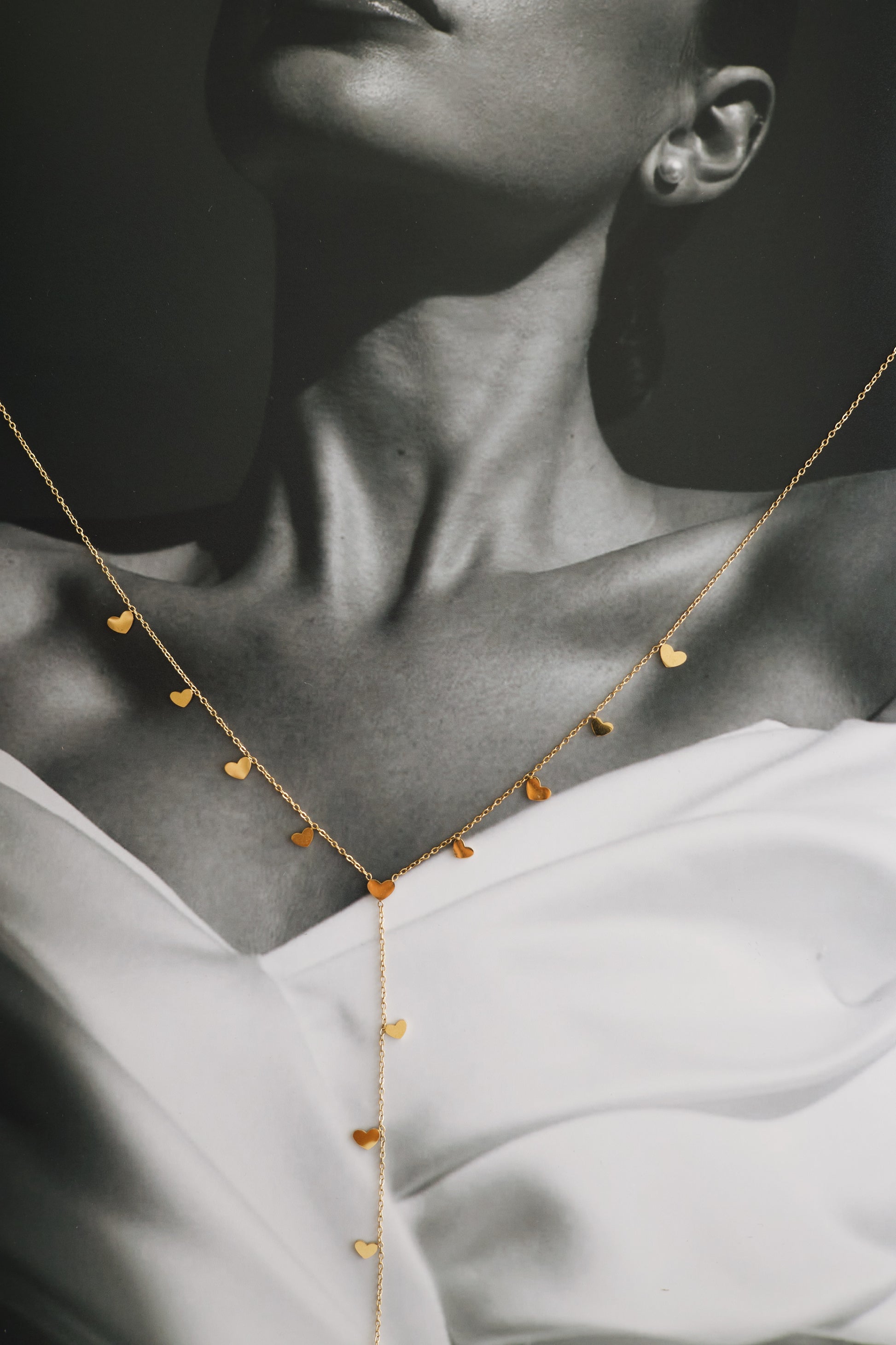 Ogrlica od nehrđajućeg čelika sa pozlatom dolazi u dizajnu s visećim zlatnim srčekima što je čini savršenim dodatkom za dnevne i večernje kombinacije. Zahvaljujući visokokvalitetnom materijalu, ogrlica je otporna na vodu, znoj i ne tamni, pa je možete nositi bez brige svakog dana.